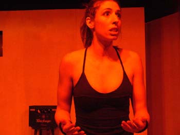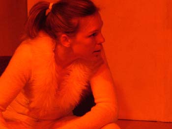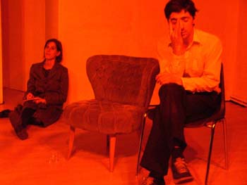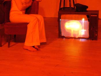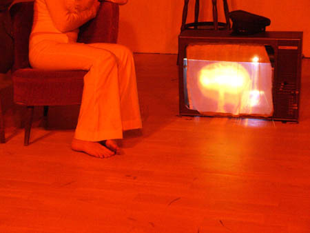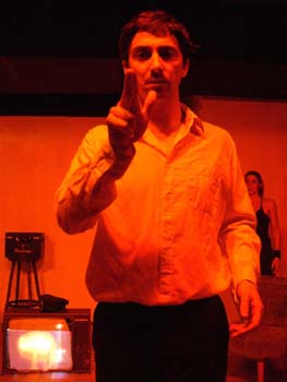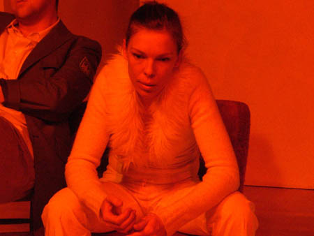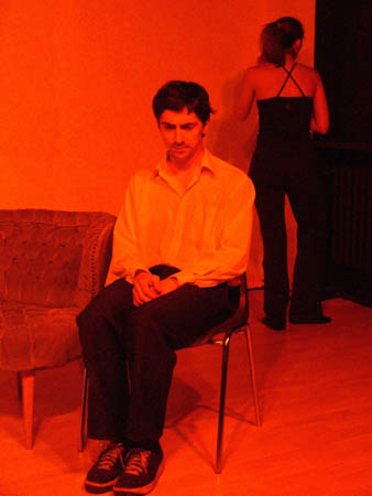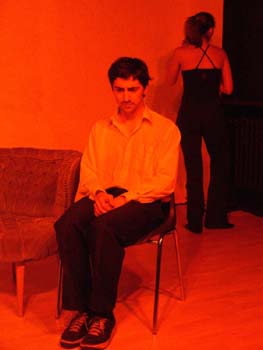 zum Sprechen. Vor dem Laken ein Bürostuhl. Herakles tritt auf.