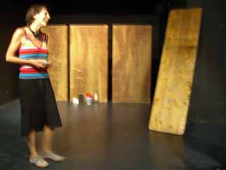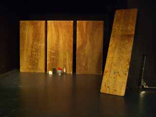 zum Sprechen. Vor dem Laken ein Bürostuhl. Herakles tritt auf.
