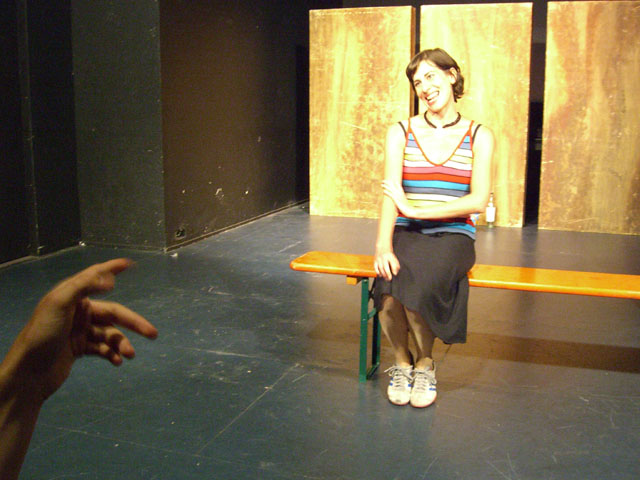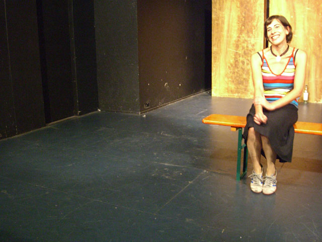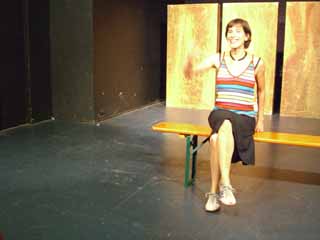 zum Sprechen. Vor dem Laken ein Bürostuhl. Herakles tritt auf.